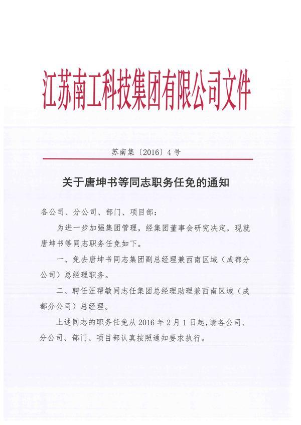 關(guān)于唐坤書等同志職務(wù)任免的通知