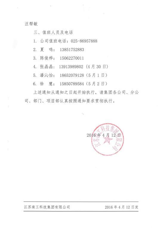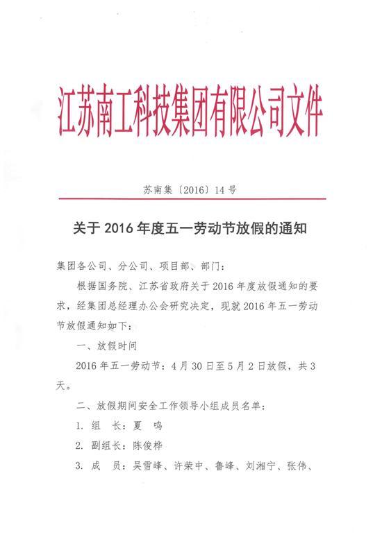 您的位置:集團(tuán)首頁 >> 新聞中心 >> 集團(tuán)公告 >> 關(guān)于2016年度五一勞動(dòng)節(jié)放假的通知