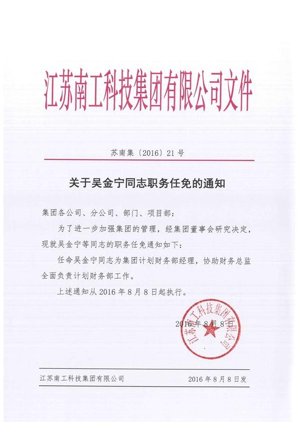 關(guān)于吳金寧同志職務(wù)任免的通知