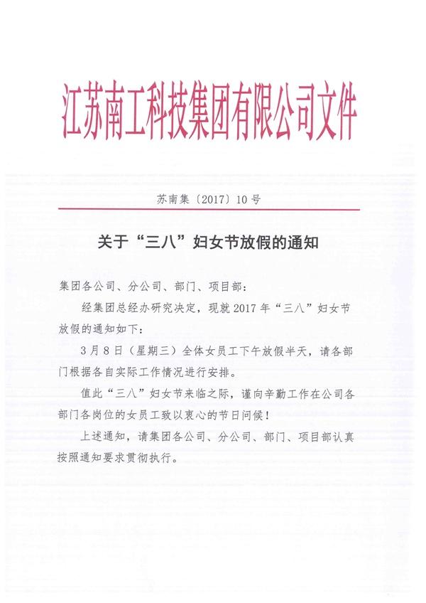 您的位置:集團(tuán)首頁(yè) >> 新聞中心 >> 集團(tuán)公告 >> 關(guān)于“三八”婦女節(jié)放假的通知