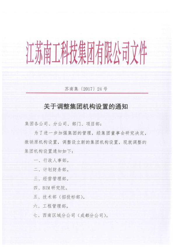 關(guān)于調(diào)整集團(tuán)機(jī)構(gòu)設(shè)置的通知