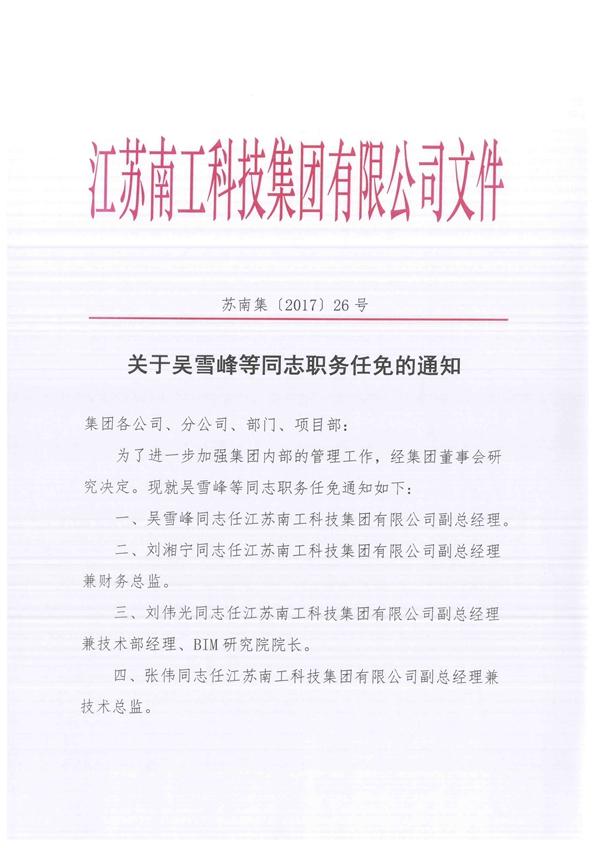 您的位置:集團(tuán)首頁(yè) >> 新聞中心 >> 集團(tuán)公告 >> 關(guān)于吳雪峰等同志職務(wù)任免的通知
