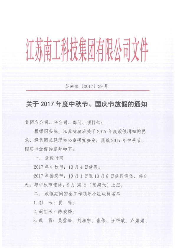 關(guān)于2017年度中秋節(jié)國慶節(jié)放假的通知