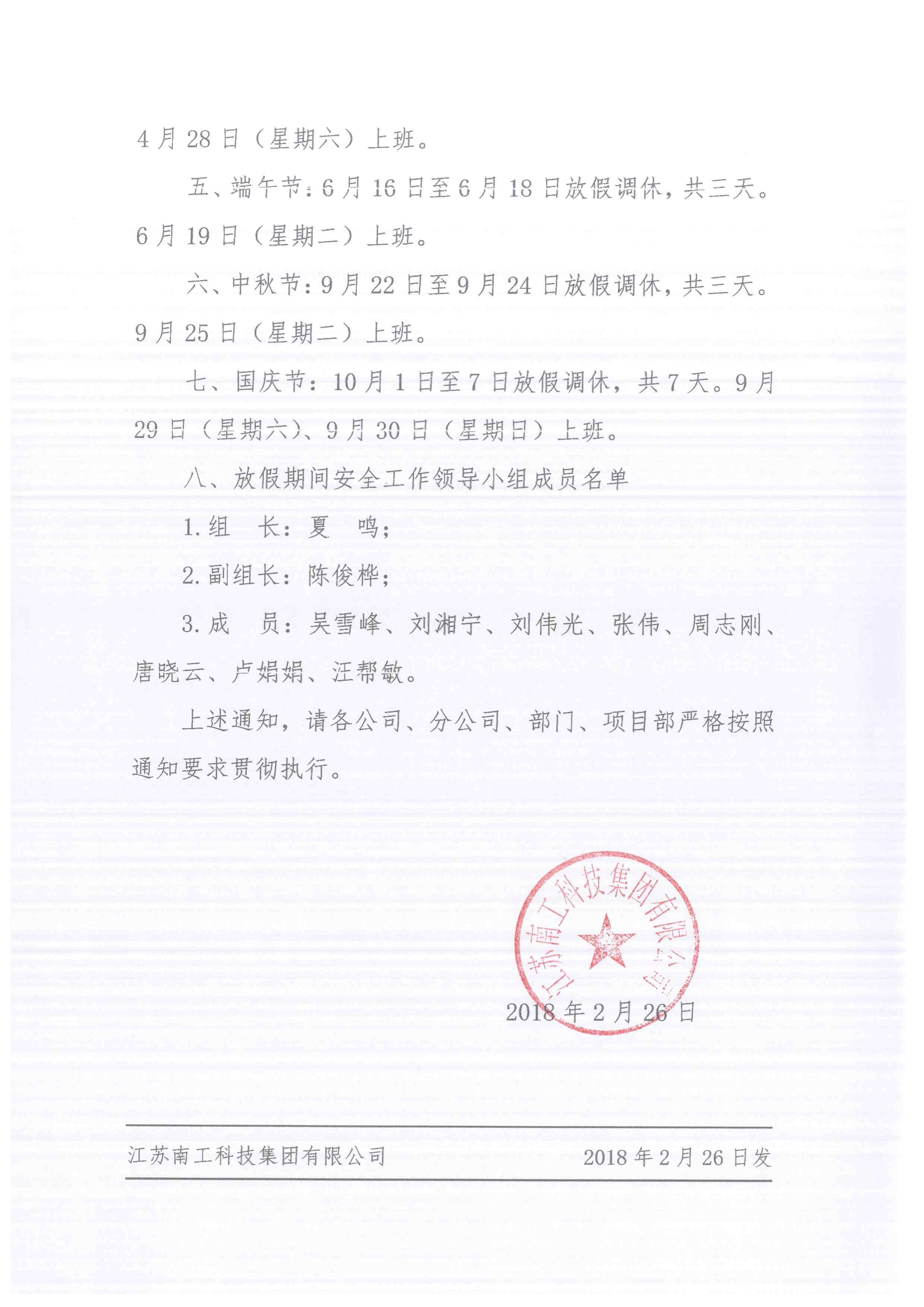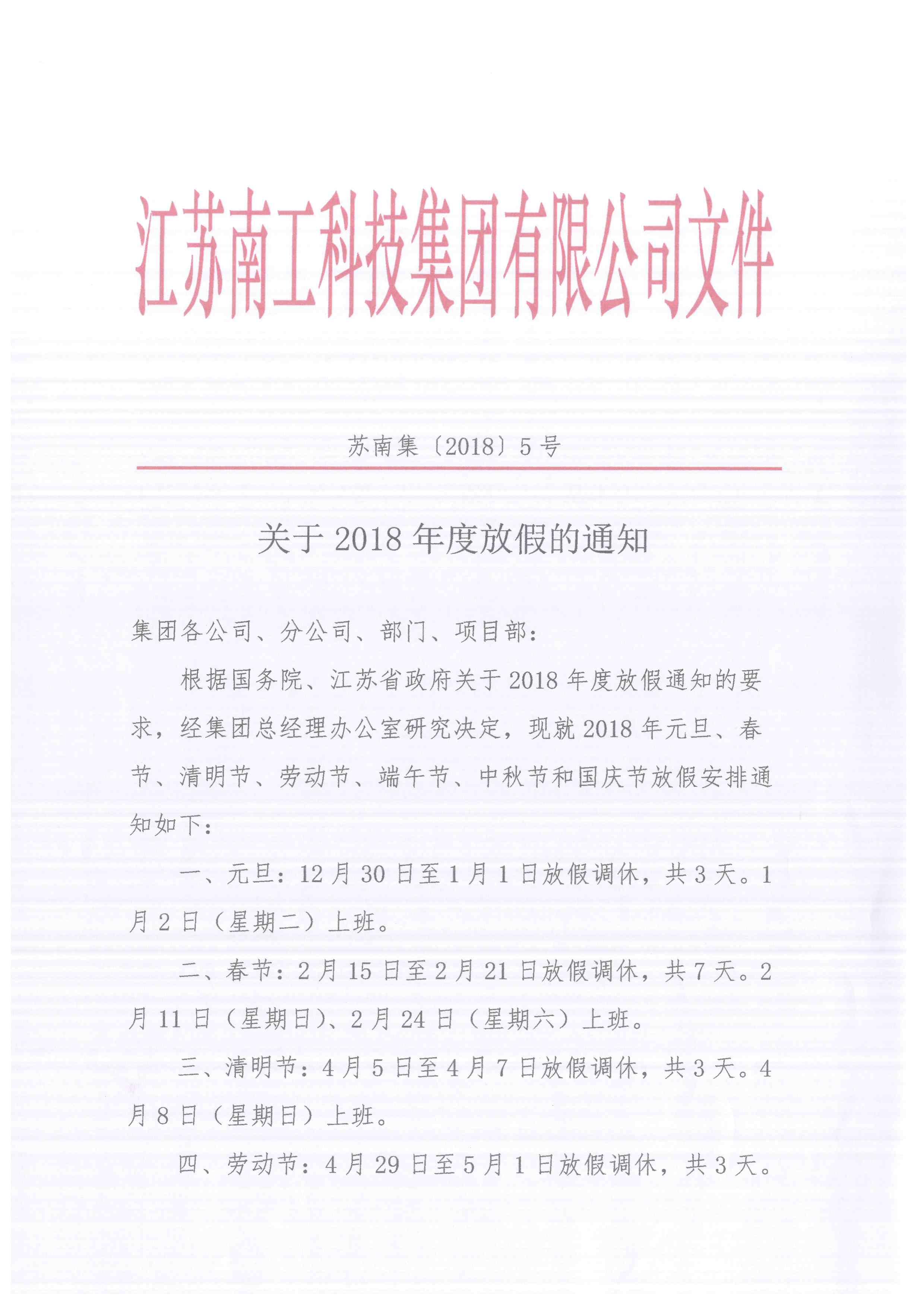 您的位置:集團首頁 >> 新聞中心 >> 集團公告 >> 關(guān)于2018年度放假的通知