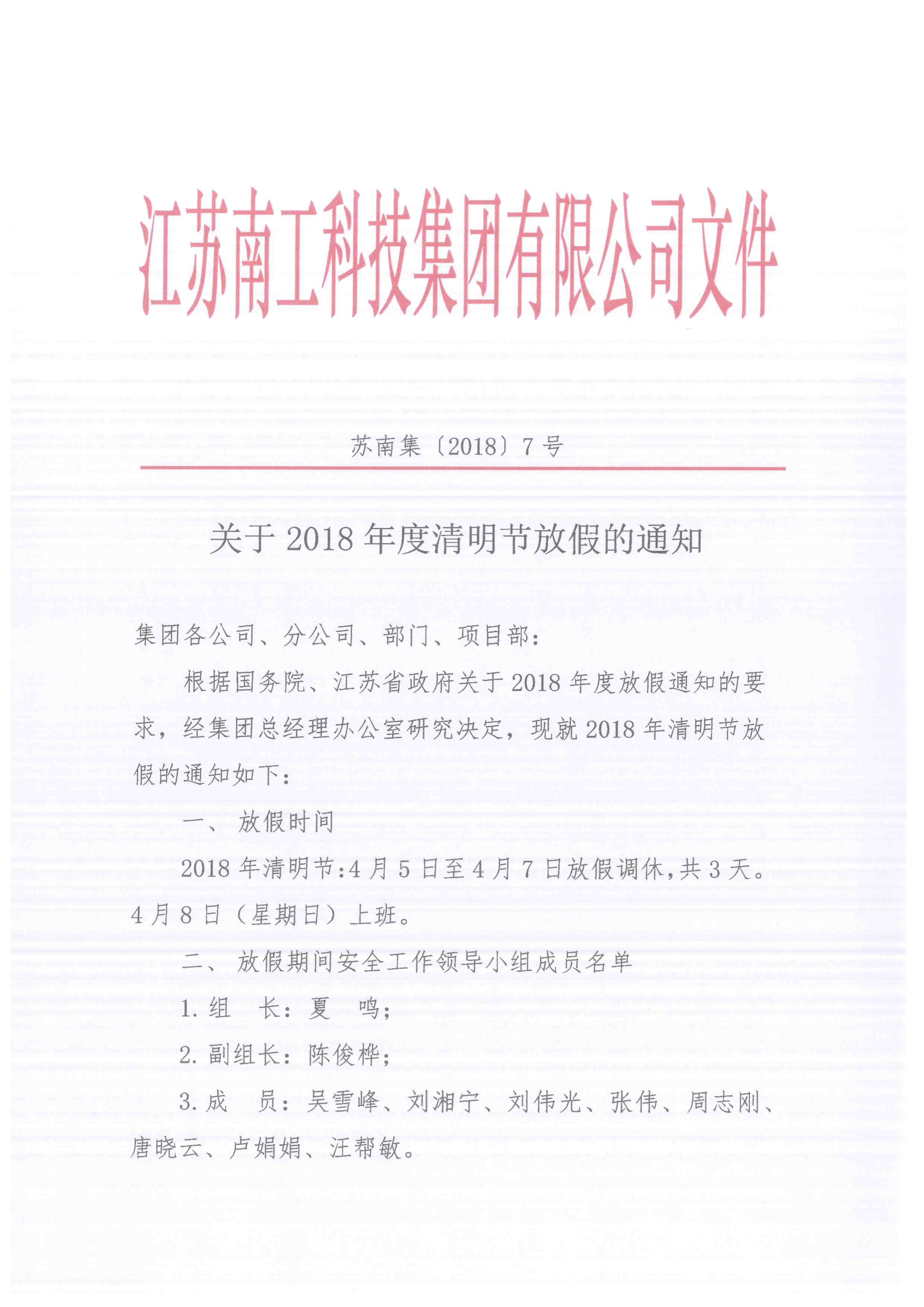 關(guān)于2018年度清明節(jié)放假的通知