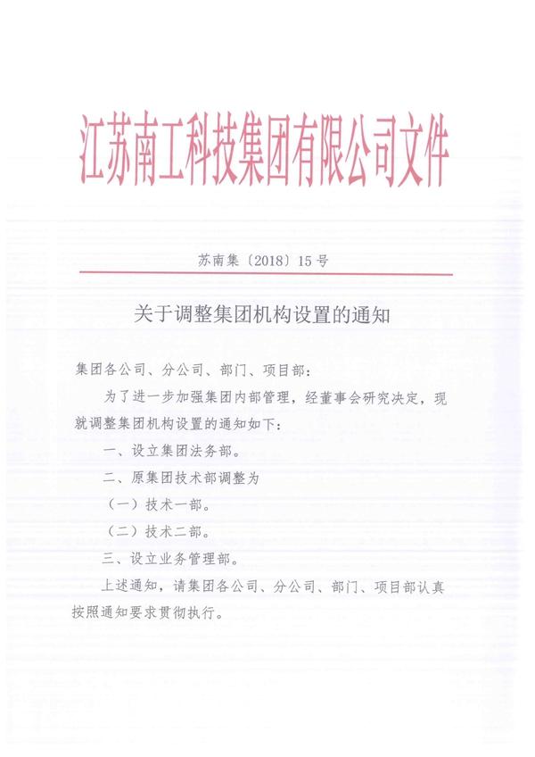 關于調(diào)整集團機構設置的通知
