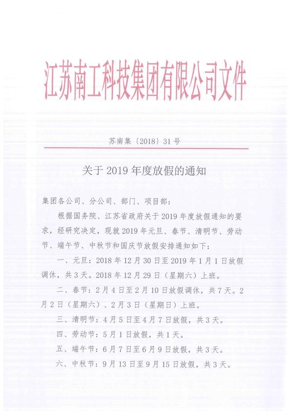 關于2019年度放假的通知