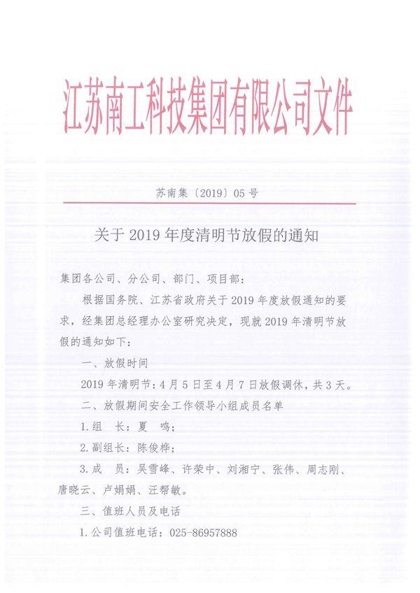 關(guān)于2019年度清明節(jié)放假的通知