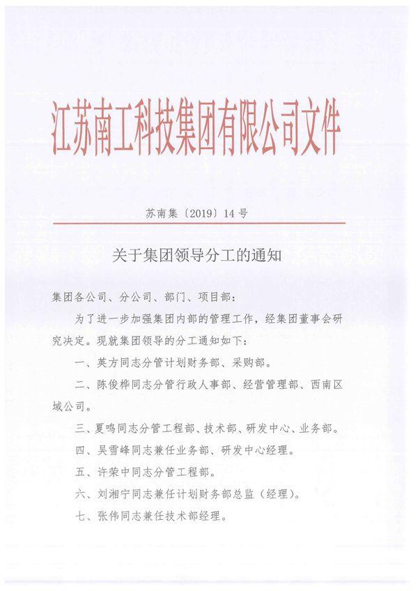 關(guān)于集團領(lǐng)導(dǎo)分工的通知