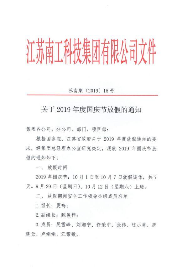 您的位置:集團首頁 >> 新聞中心 >> 集團公告 >> 關(guān)于2019年度國慶節(jié)放假的通知