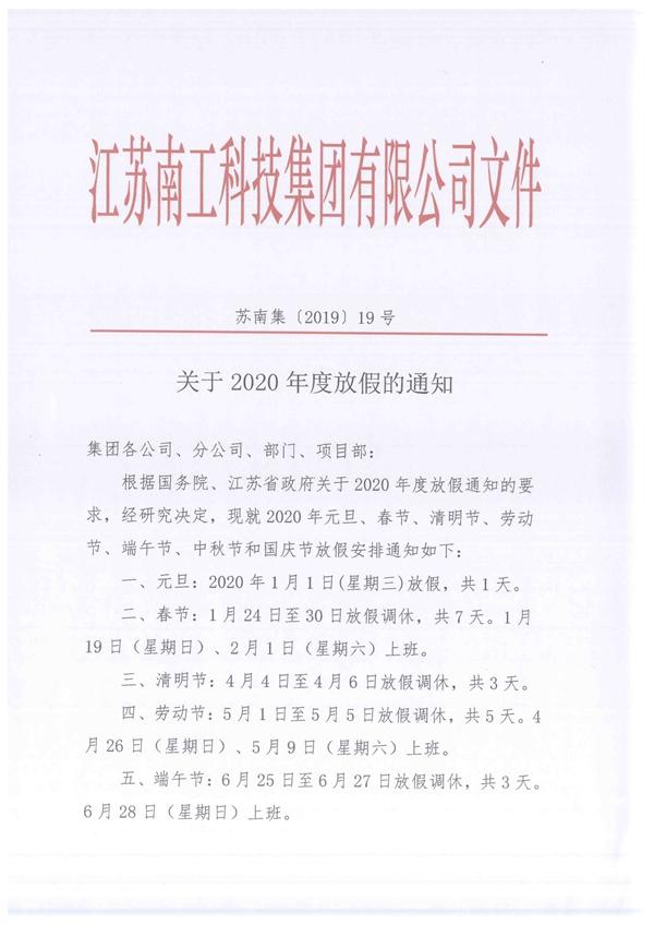 關于2020年度放假的通知