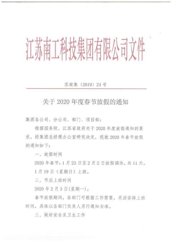 您的位置:集團(tuán)首頁 >> 新聞中心 >> 集團(tuán)公告 >> 關(guān)于2020年度春節(jié)放假的通知