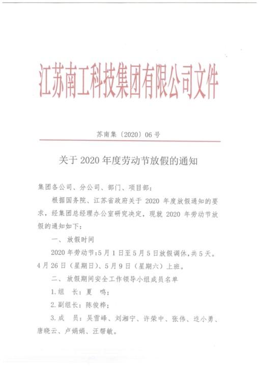 關(guān)于2020年度勞動(dòng)節(jié)放假的通知