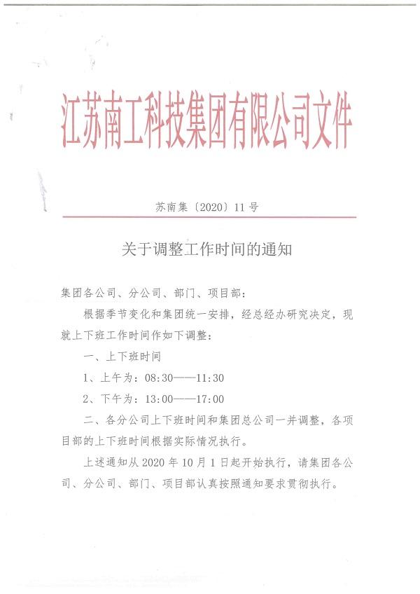 關(guān)于調(diào)整工作時(shí)間的通知