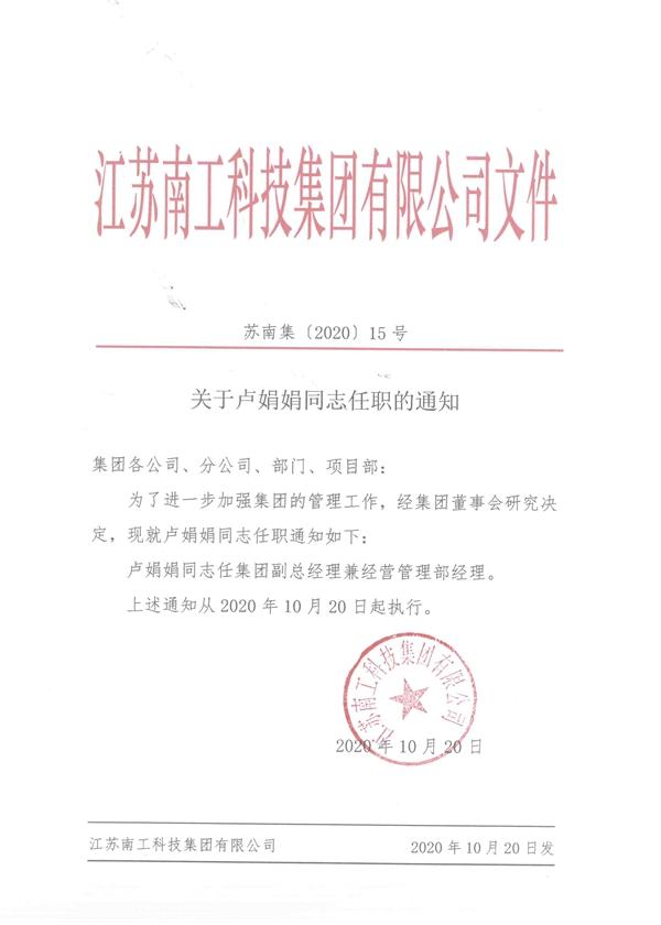您的位置:集團(tuán)首頁 >> 新聞中心 >> 集團(tuán)公告 >> 關(guān)于盧娟娟同志任職的通知