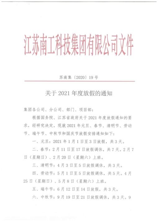 關(guān)于2021年度放假的通知