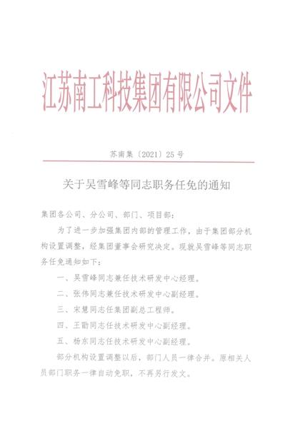 您的位置:集團首頁 >> 新聞中心 >> 集團公告 >> 關(guān)于吳雪峰等同志職務(wù)任免的通知
