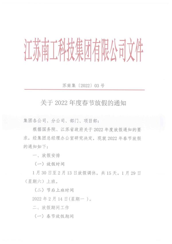 您的位置:集團(tuán)首頁 >> 新聞中心 >> 集團(tuán)公告 >> 關(guān)于2022年度春節(jié)放假的通知