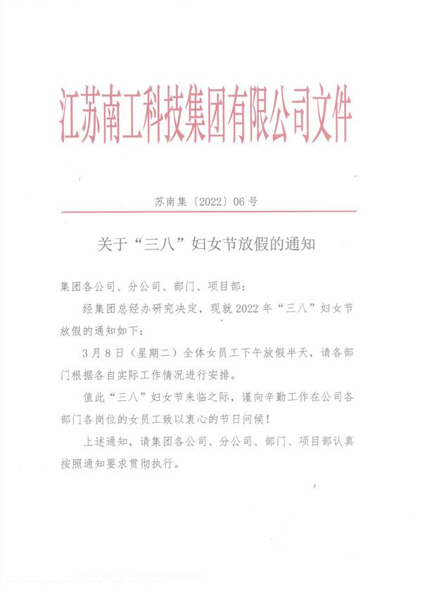 您的位置:集團(tuán)首頁 >> 新聞中心 >> 集團(tuán)公告 >> 關(guān)于“三八”婦女節(jié)放假的通知