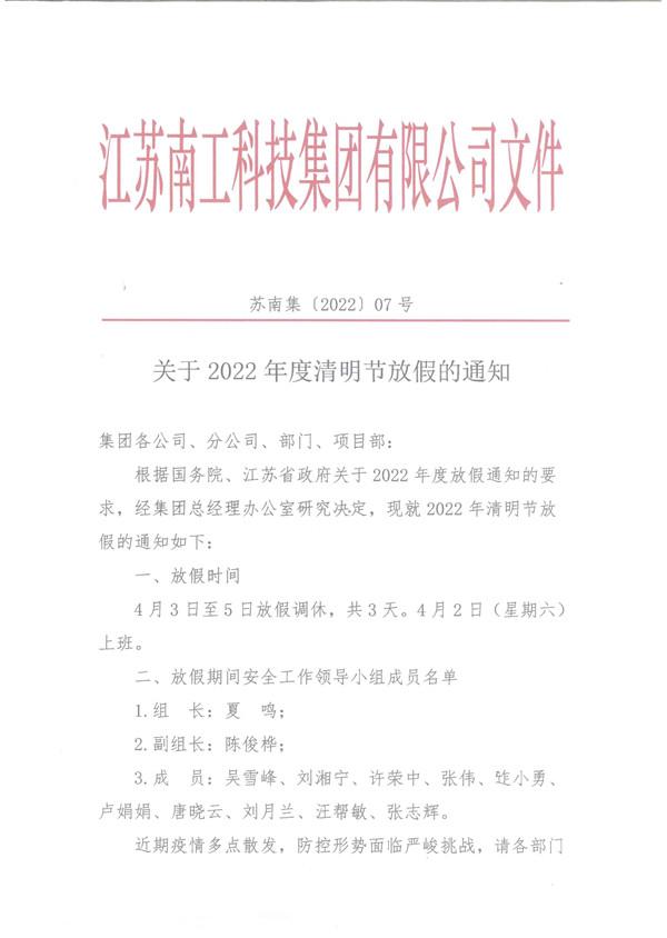 關于2022年度清明節(jié)放假的通知