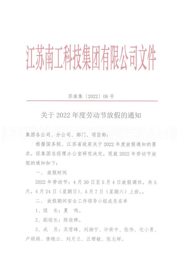關(guān)于2022年度勞動節(jié)放假的通知