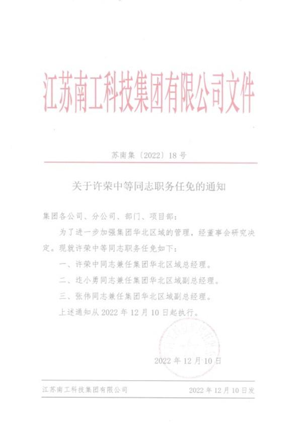 您的位置:集團首頁 >> 新聞中心 >> 集團公告 >> 關于許榮中等同志職務任免的通知
