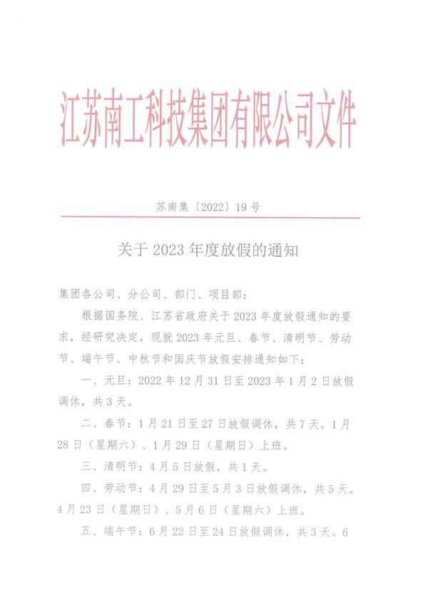 您的位置:集團首頁 >> 新聞中心 >> 集團公告 >> 關于2023年度放假的通知