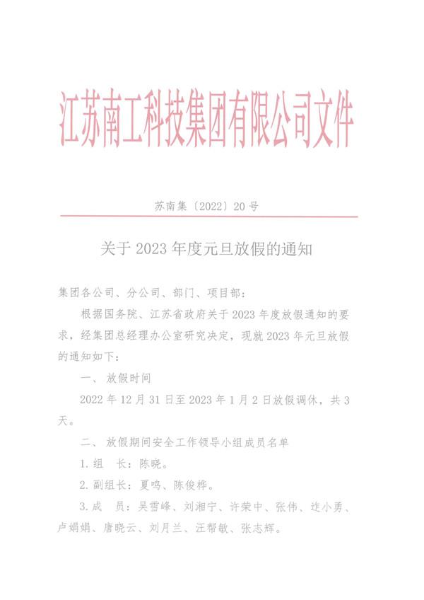 您的位置:集團(tuán)首頁 >> 新聞中心 >> 集團(tuán)公告 >> 關(guān)于2023年度元旦放假的通知