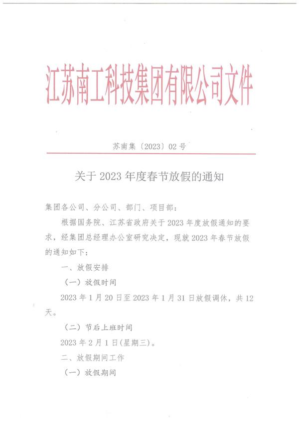 您的位置:集團(tuán)首頁(yè) >> 新聞中心 >> 集團(tuán)公告 >> 關(guān)于2023年度春節(jié)放假的通知