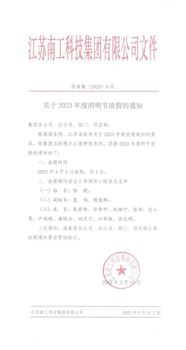 您的位置:集團(tuán)首頁 >> 新聞中心 >> 集團(tuán)公告 >> 關(guān)于2023年度清明節(jié)放假的通知