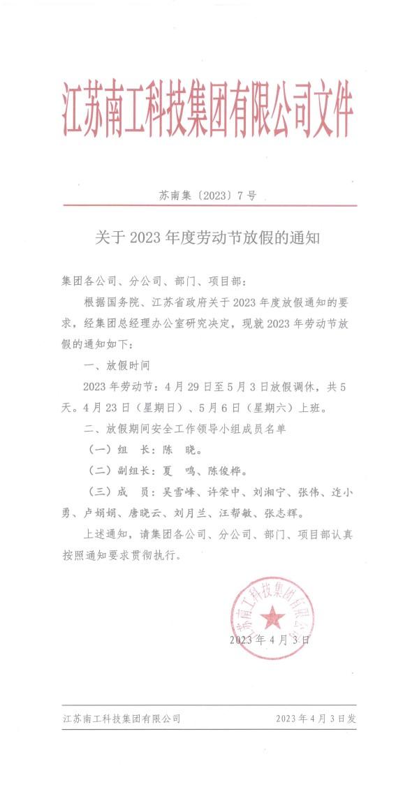 關(guān)于2023年度勞動節(jié)放假的通知