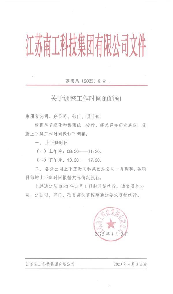 關(guān)于調(diào)整工作時(shí)間的通知
