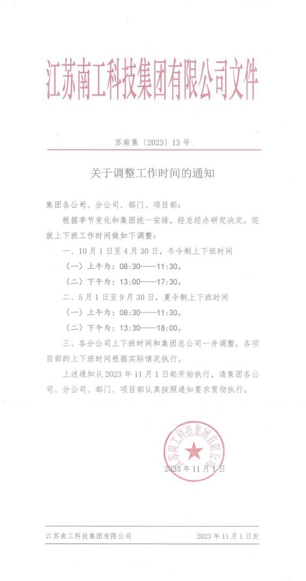關(guān)于調(diào)整工作時間的通知