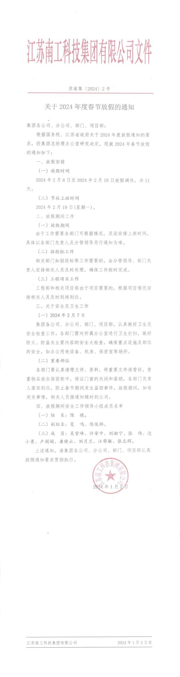 您的位置:集團首頁 >> 新聞中心 >> 集團公告 >> 關(guān)于2024年度春節(jié)放假的通知