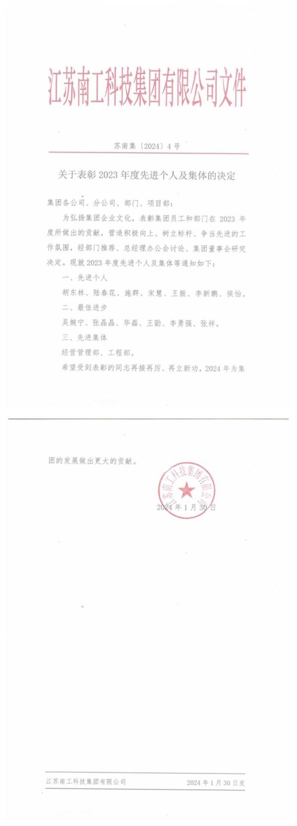 您的位置:集團首頁 >> 新聞中心 >> 集團公告 >> 關(guān)于表彰2023年度先進個人及集體的決定