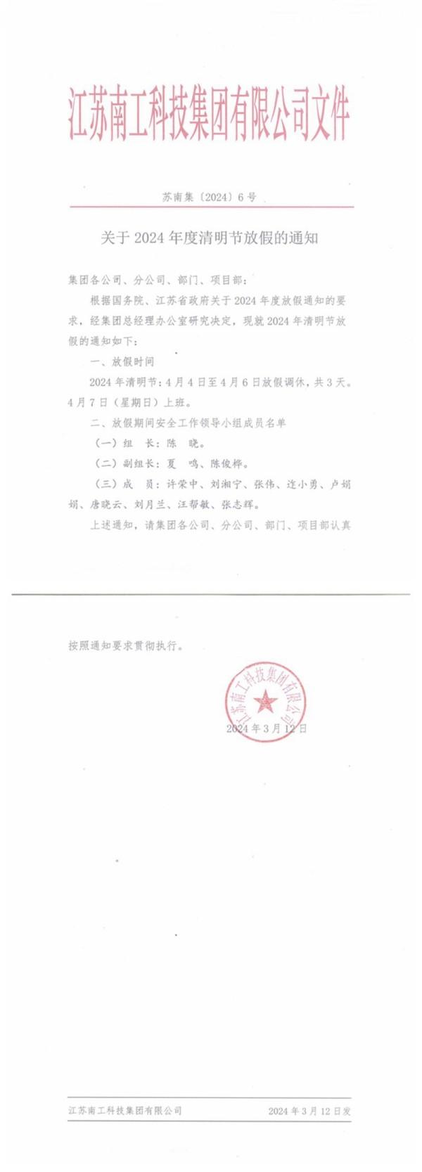 您的位置:集團(tuán)首頁 >> 新聞中心 >> 集團(tuán)公告 >> 關(guān)于2024年度清明節(jié)放假的通知