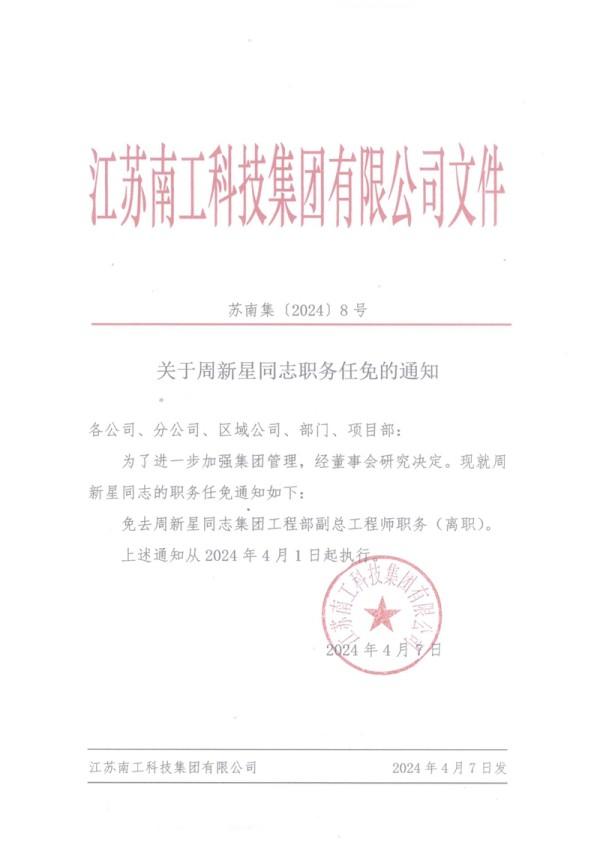 您的位置:集團(tuán)首頁(yè) >> 新聞中心 >> 集團(tuán)公告 >> 關(guān)于周新星同志職務(wù)任免的通知