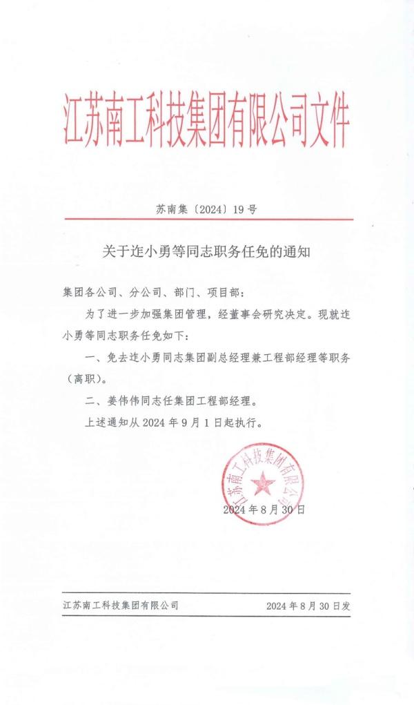 您的位置:集團(tuán)首頁 >> 新聞中心 >> 集團(tuán)公告 >> 關(guān)于迮小勇等同志職務(wù)任免的通知