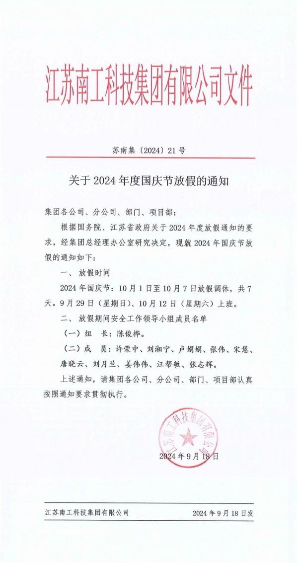 您的位置:集團首頁 >> 新聞中心 >> 集團公告 >> 關(guān)于2024年度國慶節(jié)放假的通知