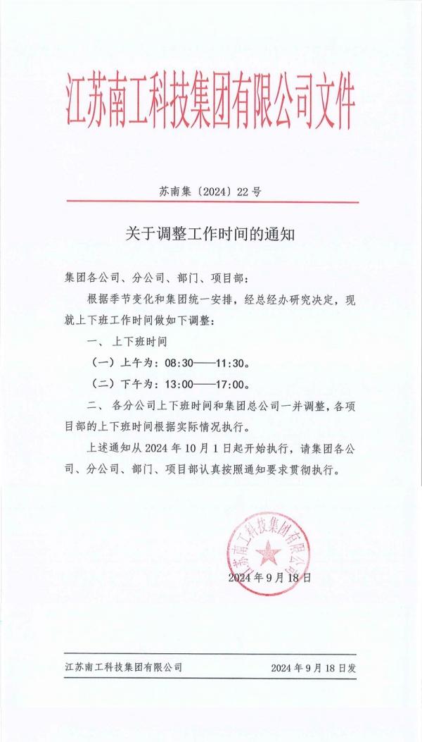 關(guān)于調(diào)整工作時(shí)間的通知