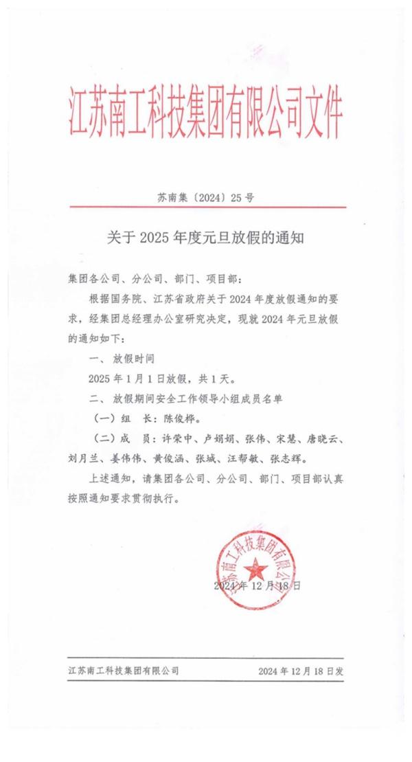 您的位置:集團(tuán)首頁(yè) >> 新聞中心 >> 集團(tuán)公告 >> 關(guān)于2025年度元旦放假的通知