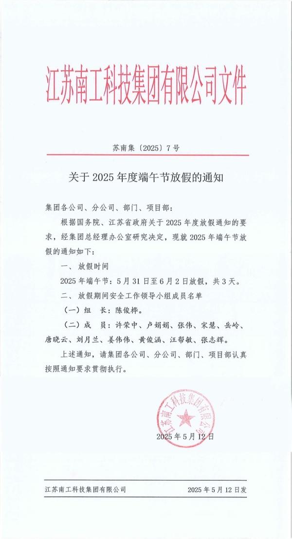 您的位置:集團首頁 >> 新聞中心 >> 集團公告 >> 關于2025年度端午節(jié)放假的通知