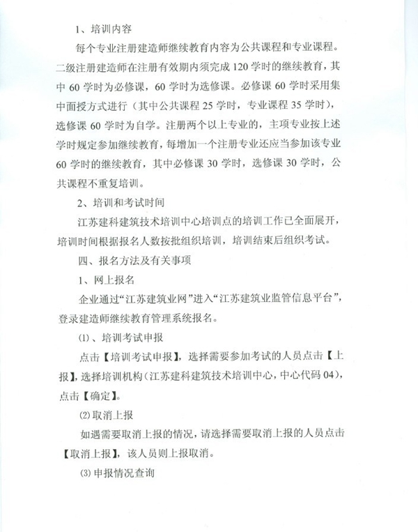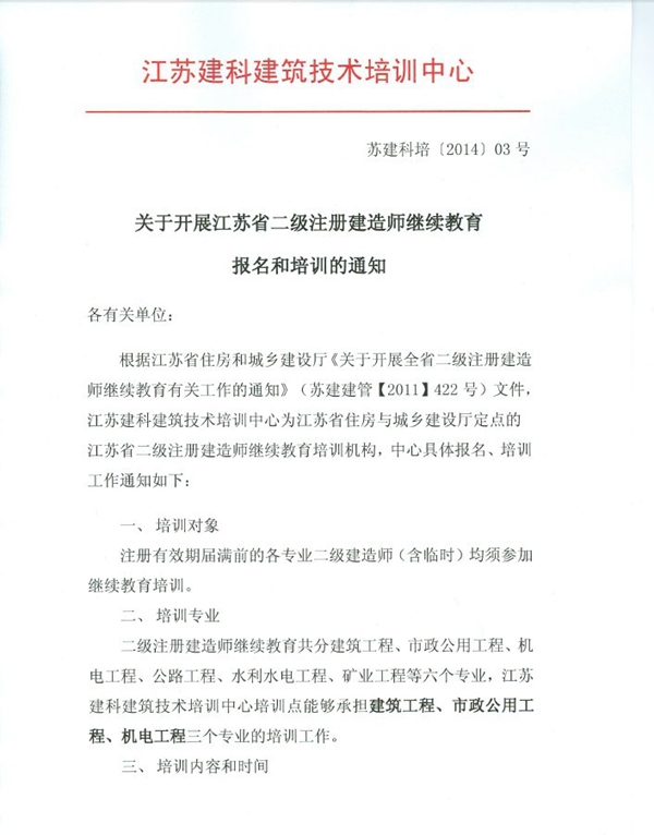關(guān)于開展江蘇省二級(jí)注冊(cè)建造師繼續(xù)教育報(bào)名和培訓(xùn)的通知