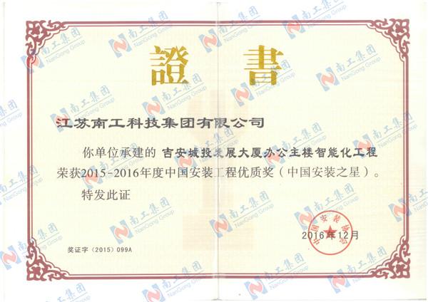 2015-2016年度中國安裝工程優(yōu)質(zhì)獎(中國安裝之星)-吉安城投發(fā)展大廈辦公主樓智能化工程