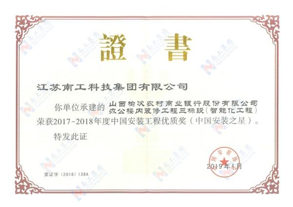 您的位置:集團(tuán)首頁(yè) >> 走進(jìn)南工 >> 企業(yè)榮譽(yù) >> 企業(yè)榮譽(yù) >> “中國(guó)安裝之星” 獲獎(jiǎng)工程——山西榆次農(nóng)村商業(yè)銀行股份有限...