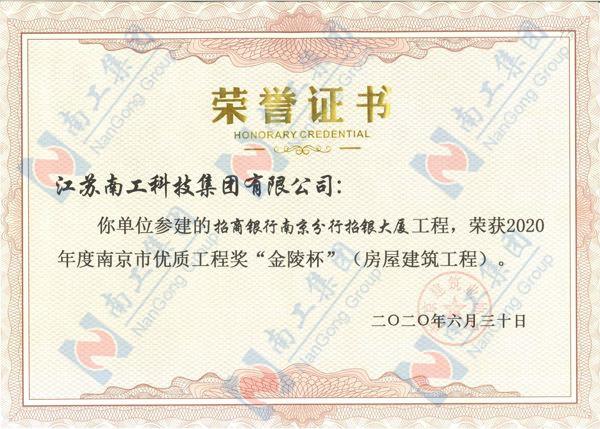 2020年度招商銀行工程“金陵杯”證書