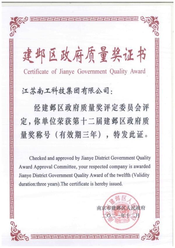 第十二屆建鄴區(qū)政府質(zhì)量獎(jiǎng)
