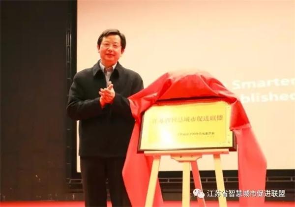 江蘇省經(jīng)濟和信息化委員會副主任胡學同為江蘇省智慧城市促進聯(lián)盟揭牌