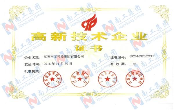 2016年11月30日,集團榮獲國家級高新技術企業(yè)稱號。