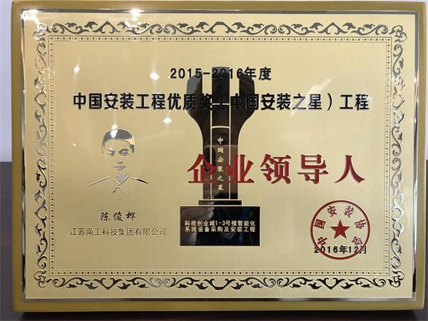 集團(tuán)執(zhí)行董事陳俊樺榮獲2015-2016年度中國(guó)安裝工程優(yōu)質(zhì)獎(jiǎng)(中國(guó)安裝之星)工程企業(yè)領(lǐng)導(dǎo)人特別榮譽(yù)證書(shū),集團(tuán)宋慧、王世虎榮獲2015-2016年度中國(guó)安裝工程優(yōu)質(zhì)獎(jiǎng)(中國(guó)安裝之星)工程項(xiàng)目經(jīng)理特別榮譽(yù)證書(shū)。